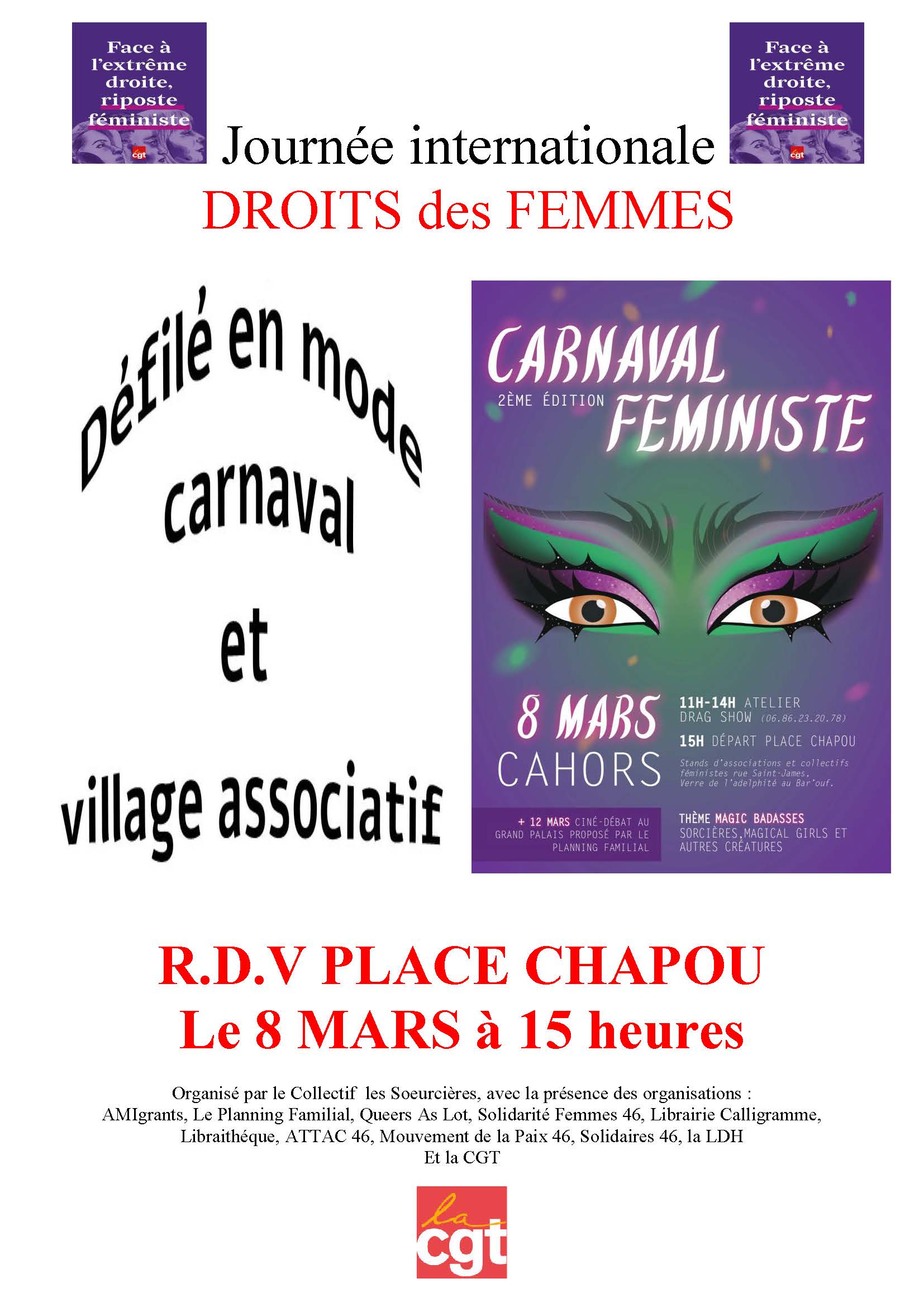 Le 8 Mars à Cahors se tiendra un défilé en mode carnaval ainsi qu’un village associatif
