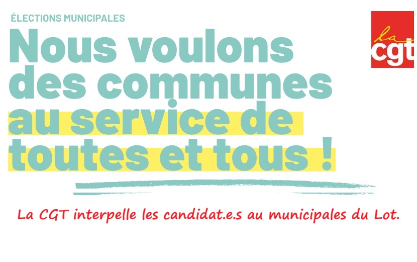 Voici le courrier que la CGT du Lot a adressé aux candidat.e.s aux municipales des communes de Cahors, Pradines, Figeac, Gourdon.